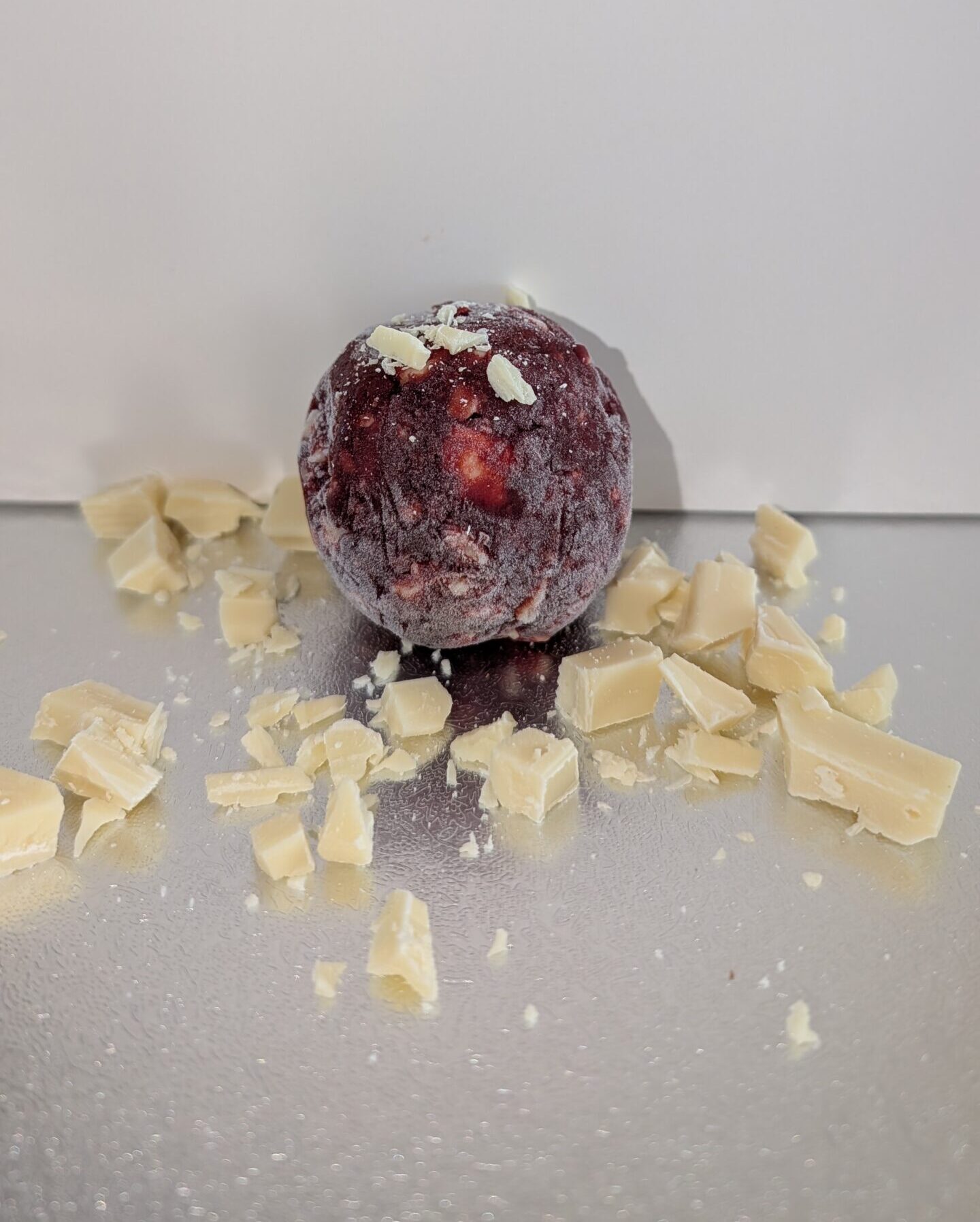 Een zacht, dieprood Red Velvet koekje, royaal gevuld met stukjes witte chocolade. De milde hint van cacao uit het deeg past perfect bij de romige, zoete bite van de chocolade.